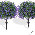 Artificial boxwood 27 inch lavender flower ball tree, artificialshrubbery with ground spikes, outdoor planting artificialplants indoor UV resistant, suitable for/outdoor decoration,