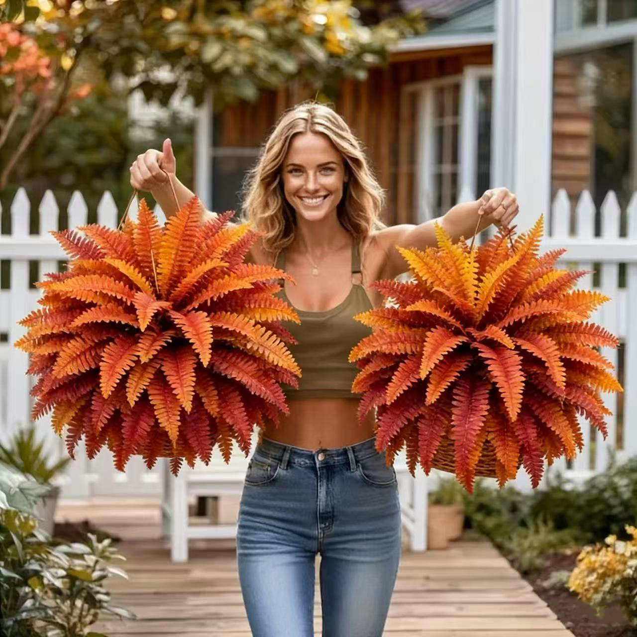 Outdoor artificial autumn plants and ferns